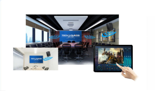 分布式架构,通过dante与TCP协议,可实现多个房间(场所)的音频相 互传输、控制、管理,可视化操作等。 如多场所声音控制、单场所声音控制。